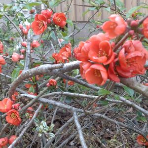 おはようございます😄 もう一枚お許しください… 庭のボケの花がいっぱい咲き始めました👀〜💓 もう10年以上 毎年咲いて春が来たのを教えてくれてます(*^^*)♪♫
