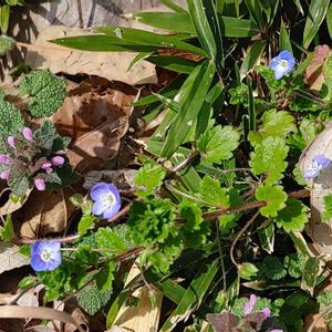 オオイヌフグリ💠 属名 オオバコ科 クワガタソ ウ属 別名: 瑠璃唐草 天人唐草 星の瞳 名前の由来 オオイヌノフグリの実の形が犬の陰囊に似ているので植物学者の牧野富太郎が名付けた 花言葉:「忠実」「信頼」「清ら か」 春の訪れ✨ あら👀!お花が咲いてました 孫とてんとう虫を探したり散策しながら楽しい一時☺️✨