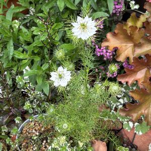 こんにちは😊 雨予報が晴れにかわってたので 蒸し暑いけどちょっと庭活𖤣𖥧𖥣。 ① 我が家の初ニゲラ 葉っぱだけの苗をお誕生日月のプレゼント🎁で選んだ 咲いてからわかる…白ニゲラ🤍 ②③ 昨日の花壇 ④⑤ 真ん中の残ってるビオラを撤去 一昨日お迎えのリシマキア ボジョレーを植え付け 暑さで弱らないことを祈る…(-ω-人)