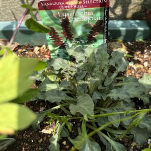 カラーリーフのリシマキア🌿,, 今黄色い花を可愛く咲かせてくれてますෆ˚* 1度で2度おいしいコ✨️デスヨネꕀ⋆♪̊̈♪̆̈ うちではミッドナイトサンが1番元気🌿,,❶❷昨日 リッシー(❺今朝)とオーレアは昨年😇 またお迎えしました𖤣𖥧𖥣。𖥧𖧧 姿の違うリシマキアボジョレーさん チンアナゴのようになってきました🍷 ❹5月中旬 ❺一昨昨日