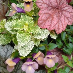 1️⃣ トレニアと斑入りカラミンサ、ヒューケラの寄せ植え 2️⃣ アンゲロニア 3️⃣ 宿根サルビアあずきとリシマキア ボジョレー