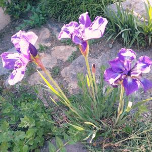 おはようございます。 6時38分です。 畑のジャーマンアイリスが膨らんでいました。 いくつか 紫や青系の花も周りに ありました。 💚スライドしてね。💚
