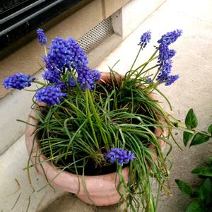 お隣の畑に若いふたりが 耕しにみえました。 塀ごしに 言葉をかわし 早速 😃🍒😃になりました。 いただいたねよ。 ほしかった ムスカリを 鉢いっぱいに。 嬉しかったです。(*⌒∇⌒*)