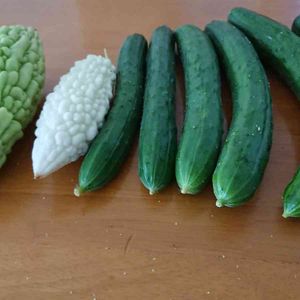 ずんぐりのゴーヤが出来ました〜。 ゴーヤチャンプルにしま〜す。 🥒🌼˚*•.¸✨¸.•*”🥒🌼˚*•.¸✨¸.•*”🥒🌼