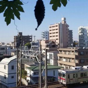 窓から見える風景💚 2代目ゴーヤ君のつぶやき 電車が見えて眺めはいいんだけど、もう風がちょっと冷たいんだよね😖