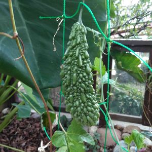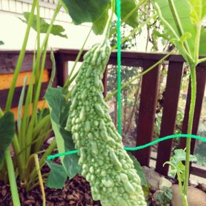 花が咲いてから2週間目のゴーヤ。すっかり身長超えで、上部のゴーヤがこんな感じに大きくなってるのに気づかなかった😄どうやら順調のようです(^o^)台風対策で、ネットごと玄関に避難中。早く太陽の元へ戻してあげたいヽ(・∀・)
