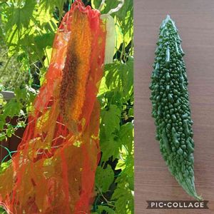 おはようございます😊 プランター菜園番外編④ ツルレイシ ~1粒のタネからのその後~ 右📷️→4本目の収穫 左📷️→学校の先生に、もし種が取れたら、来年育てる子達のために持って来てほしいとお話があったようで、5本目は種取り用に、観察中👀鳥さん対策でネット😆 無事良い種がとれますように⭐ 今日も1日お元気でお過ごし下さい🍀