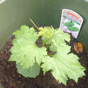 スナップエンドウ、ベランダの柵よりに置いたから光が足りないらしく、もやしっこ。一つだけ花がついた。 無理かなあ? 二階ベランダだから虫来ないかと思ったのに、やはり葉っぱを食べられてる。 スナップエンドウは苗を購入。 そして、ゴーヤはご近所さんちで去年とれた種をいただき、4月に水に4日も浸し、それからまいて、待つこと1ヶ月。 やっと芽がでた。