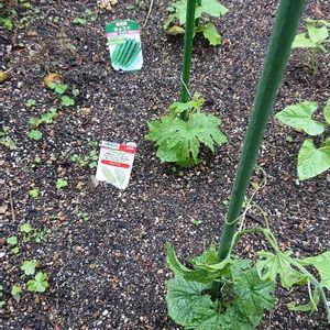庭の「ゴーヤ(緑と白分)」とキュウリを昨日植えました。