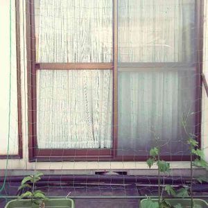 やっとセットしたグリーンカーテン🌿💚🌿😅パッションフルーツ🥥さんとゴーヤ君🥒つる伸ばし競争スタート💨