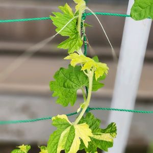 ゴーヤ💚 斑入りの葉っぱ、まだまだきれいです。斑入りのゴーヤではなかった😄😄