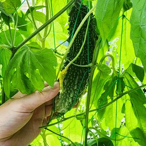 畑でダメになったものを捨て置く一画があるのですが 昨年捨てたゴーヤの種が発芽して ちょっとした苗になっておりました😆 落ち葉やいろんなものが積み重なり、土はフカフカだし有機肥料でしっかり育ってました 先に植えてある一軍の購入ゴーヤ選手のお隣に移植しました。 ネットも間借りさせてもらえることになり、 よかったよかった😆