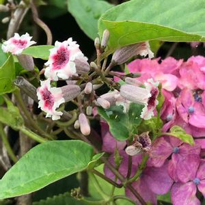 鳥屋野潟 6/29 紫陽花に絡みついた、ヘクソカズラ(屁糞蔓)。別名、ヤイトバナ(灸花)、サオトメカズラ(早乙女蔓)。・・・オイラは早乙女蔓に一票。 ✌️✌️✌️😃😃😃✌️✌️✌️
