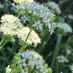 ニラの花 裏の空き地からやって来て すっかり我が家に馴染んでいます 蕾や小さなお花が可愛いよ 横一列に並んでるのも可愛いね🌿