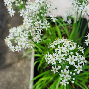 白い水曜日🤍アシダンセラ・ムリエレー(1枚目)と、ニラの花(2,3枚目)です😊🤍 アシダンセラは植えるのが遅れて、余り咲きませんでした😢 ニラはこのうちの前の住人のかたが植えていらした物が残っていたのでしょう。 葉っぱの時には、葉の形も匂いもニラに似ているけど、アリウムの小型の品種も同じ仲間で良く似てるからなあと思っていたのですが花が咲いたらこれはニラだー!と確定👍しました😁来年は食べられるかな〜?🤗😄😋