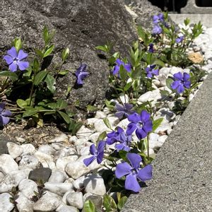 ヒメツルニチニチソウ 咲き始めの早さにびっくりして投稿した 2週間前。 順調に砂利のところで咲き進んでます💜 相変わらず汚い砂利😅💦💦
