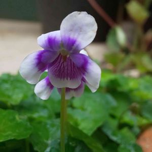 レンガの小径と土間コンの隙間を埋めてもらおうと植えた株分けのパンダスミレがやっと開花💜 ネットで検索すると増えすぎと出てきますが我が家の庭ではそれほどでも~😅