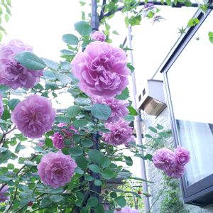 今日の庭バラ🌹 駐車場から庭への入り口に今年アーチを設置して初めてのレイニーブルー💙 アーチの右側から這わせていたバラは陽当たり悪くて成長しないと途中でどかしてしまったのでアーチがまだスカスカです😅
