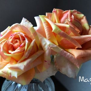 連投失礼しますo(・x・)/ 咲いた薔薇をカットして花瓶へ🌹 右はしシャリテトワもまだまだ綺麗✨ 4日間も変わらない花もち ちょっとグレーっぽくなったかも 真ん中のカラーオブジュピターは今日カット 咲き始めのシャリテトワに色似てるかも 左のフィスタも花もち良くて昨日と変わらず 3種共香りのタイプが違って面白い どれも中香くらいかな 可愛い(っ´ω`c)♡