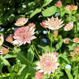 お庭でアストランティアさんとバラでアレンジ。葉っぱもなんか拾ってこようと思いましたが面倒になり断念。このアストランティアはローマだったんですね。外にいると白いからマヨールかと思ってました。