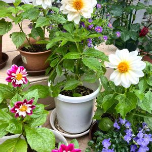 ダリアさんの鉢を掘り起こして みたら数個ずつ出てきた球根を 植えたら、それぞれに咲いてくれました🪴 特にお気に入りのピンクの子は 3鉢に増えて嬉しい〜😊✌️💕🪴