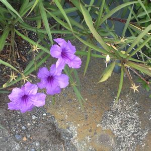 今朝のベランダで咲く花💜☁ 何年かあるのに 名前が分からない ずっと🌿葉っぱだけだったのに ここ最近咲いてきた花💜 オシロイバナと反対に 夕方には萎んで仕舞う お花です💜