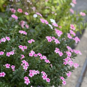 玄関前🌱 ニチニチソウがまだまだ元気に咲いています♪ 種まきケール🥬はブロッコリースプライトみたいになってきました🫢