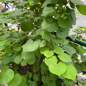 霧雨の、ハナズオウ。 花がなければ葉の形が楽し。