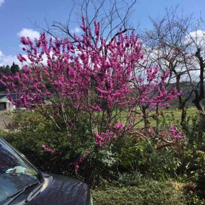 新葉が出る前に枝に密集して咲く、花蘇芳の花。 何て色鮮やかなんでしょう🎵