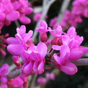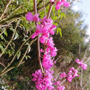 おはようございます。 遊歩道に咲いている ハナズオウ。 ピンク色のちっちゃな粒々が 目をひき、撮りたくなるのです~