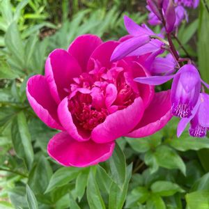 ショッキングピンクの芍薬(しゃくやく)が咲きました! 4年前より8日程遅い開花です。