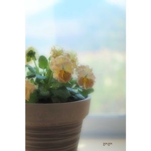 今日のお花 ⚘⚘⚘ . . 蕾の時はかなり濃い紫色の子ですが 咲き進むにつれ黄色っぽく💛 お迎えした時は完全にイエローちゃんだったのでこれからの変化も楽しみっ♩ パンジーをお家の中で育てるのは初めてで最強寒波のここ数日も窓辺に咲くお花を楽しめるのは嬉しいっ♩