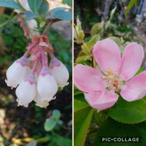庭の 左 ブルーベリー 右 カリン 可愛いお花咲かせています 今年もいっぱい実を付けてくれますように!