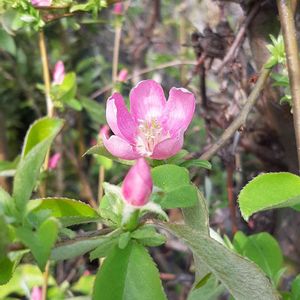 おはようございます😃 ピンクの美しい小さな花です。 咲き始めのチューリップのような姿です。 完全に開く前のこの姿が好きです。 カリンの花です。 黄色い甘い香りの実が有名ですが、花は小さくて、あまり目立ちません。 私はこのカップのような姿が好きで、 カリンカップと名付けて、良い形をしたカップを探します。😘