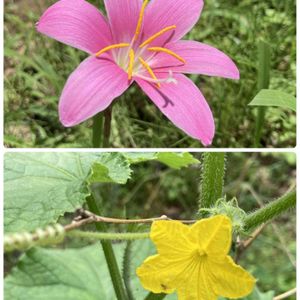 おはようございます( ´ ▽ ` )ノ🎵 おっきな🌸ゼフィランサス🌸咲きました💕 たますだれさんの3倍近いで〰️(☝︎ ՞ਊ ՞)☝︎🎵 今日の花🏷️キュウリ🥒🙌 我が家の畑🌱、ゆっくり成長中 皆さま、良い週末を🎶🎵🎶