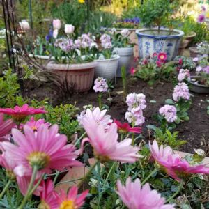 早朝のピンクコーナー♡ ストック満開になったら見応えあるかな? 今年は色分けしたお庭にしています♪