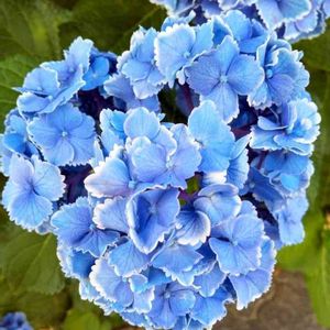花のまわりに白い縁取りのある水色の紫陽花の花、綺麗です💕