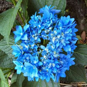 青い八重咲き紫陽花の花、とても綺麗な色と形です💕