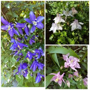 青紫、白、ピンクのオダマキの花達、可愛いです💕