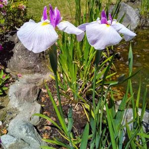 公園池の白に紫が入ったハナショウブの花、可愛い色です💕