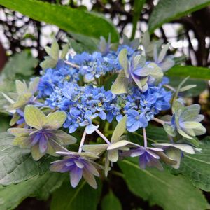 🏷青い花で梅雨景色2023 🏷美しく青きドヨウ 青い紫陽花の花が、今年はもう緑色🟢の秋色紫陽花になって来ました、とても綺麗です💙💚🌿