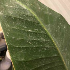 オーガスタの葉っぱが白くなってしまいました。 毎日葉っぱに霧吹きをしています。 カビでしょうか? (葉っぱの裏側は綺麗です) 教えてください!