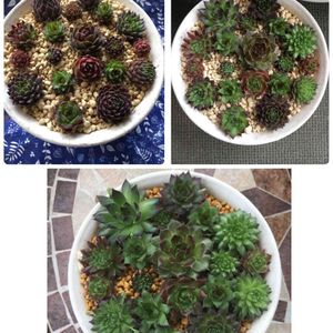 センペルビウムさんが、どんどん大きくなって…💦 左上…4月17日 右上…5月8日 下…5月15日 まだ成長しますよね? 密過ぎてしまうよ〜💦 蒸れちゃうかな😱 でも、成長してると嬉しい😊