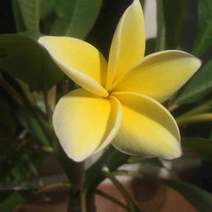 プルメリア。挿し木1年目にもかかわらず2輪目も咲いてくれました。いい香りがします( ^ω^ )