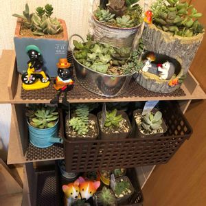 今日は仕事が午前だったので、午後は100均巡り。 三軒回ったのですが…田舎なので多肉は何も変わらず、元気のない徒長してるヒョロヒョロくんしか残ってませんでした。 ピックやブリキ缶を買って、明日からの台風対策をせねば!と簡単な組み立て式のラックとバスケットを購入し、とりあえず玄関に避難。 蒸れたりしなきゃいいなぁ。 大きな鉢は、取り込めないのでそのまま耐えてもらうしかないかな😅きっと強く育ってくれると信じよう‼️