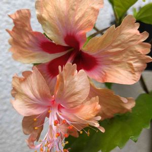 今日のお花、ハイビスカス 冬越し失敗したフラミンゴ 去年の写真です。 雨が降ってます。風はいくらか弱まった❓️🤔