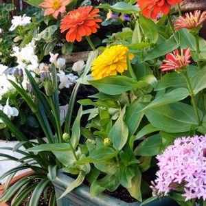 🏵️ジニアミックス🏵️ 派手すぎて目がクラクラしそうなジニアたち🤩 1株から何色も咲いてコスパ抜群です🎶 お盆休みに入りましたが…コロナの増加、台風の接近と油断できませんね😣 心穏やかに過ごせますように🙏✨