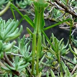 おはようございます☁ フレンチラベンダーに細長い緑色の物体を見つけて、なんだろ~と近づいたら、かまきりでした‼私にとっては珍しいので、📷撮りまくり(笑) よく見ると大きく口開けてるの。もしかしたら威嚇してる?