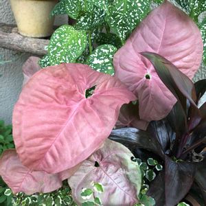 昨日のお花。間に合わなかったけど…😅 ダイソーのピンクシンゴニウムはこの夏とってもたくましく大きくなってくれました❣️寄せ植えだけど今日は主役で! ピンクが美しいですね〜💕💕🥰
