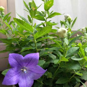 桔梗が咲きました❣️ 蕾も沢山~💕 毎年気を揉ませる桔梗ですが、白い花も仲間入りして今年は楽しめそうです。